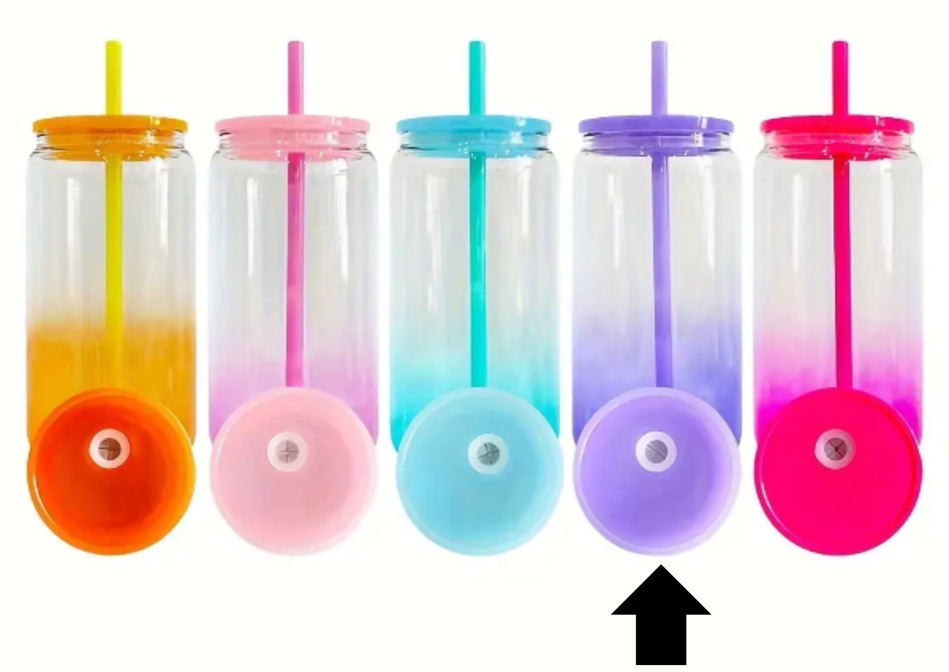 16oz Ombre Sublimation UVDTF Vinyl Glass Mug with Matching Lid and Straw